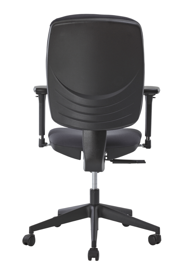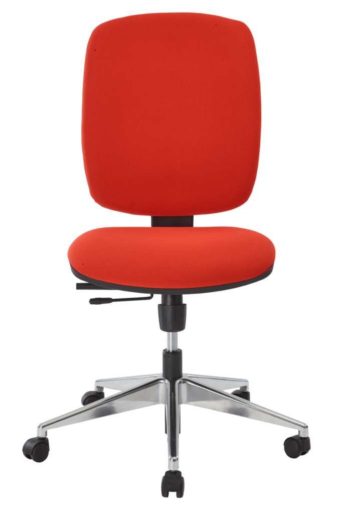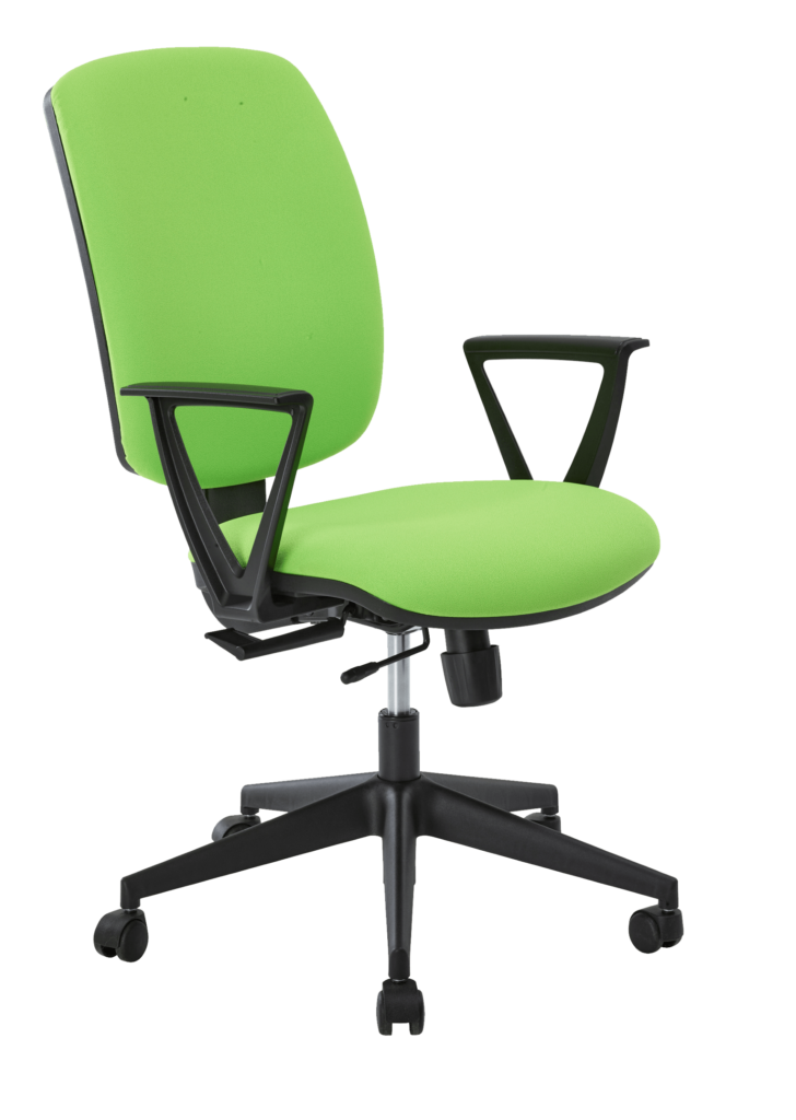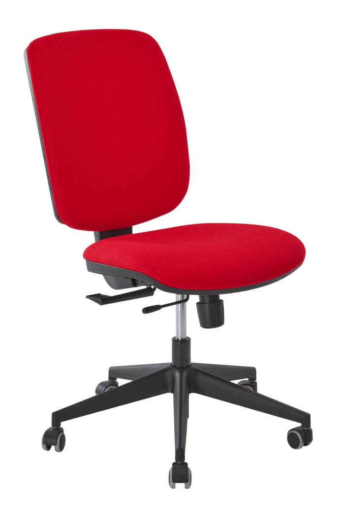 Handle adjustment for backrest locking/unlocking and seat height adjustment by self-supporting gas spring, nominal stroke 140 mm.