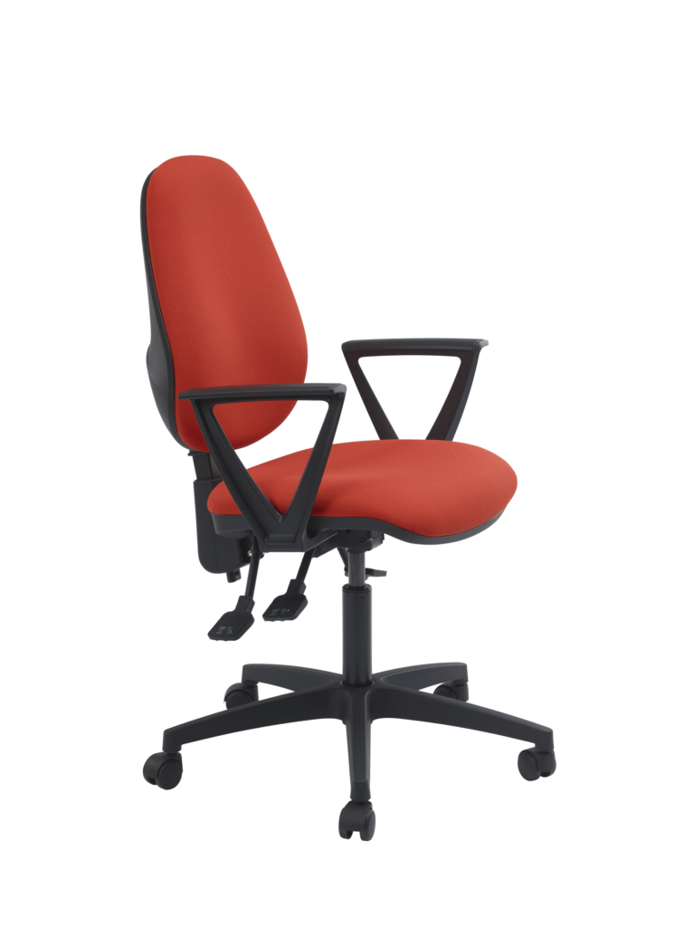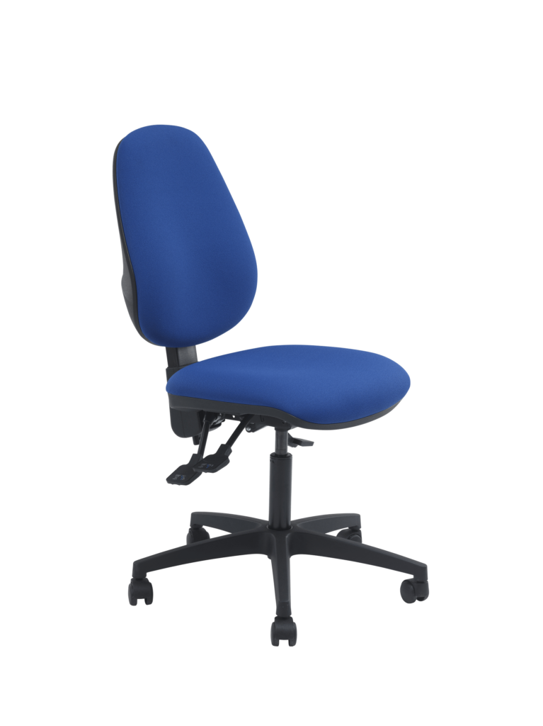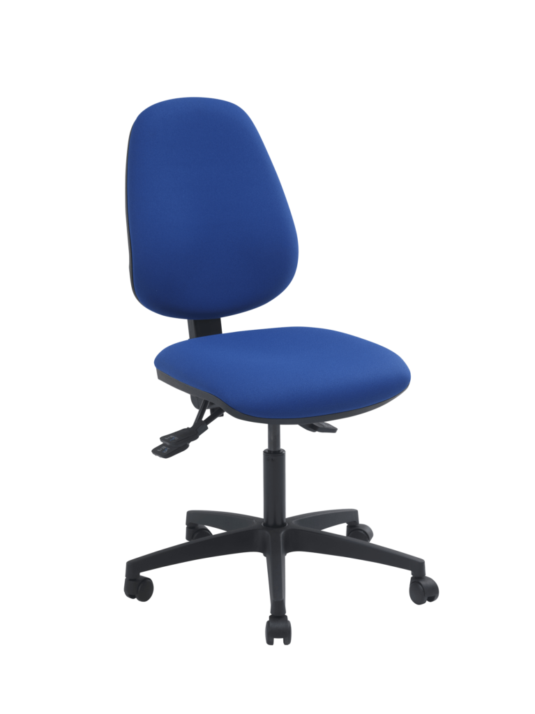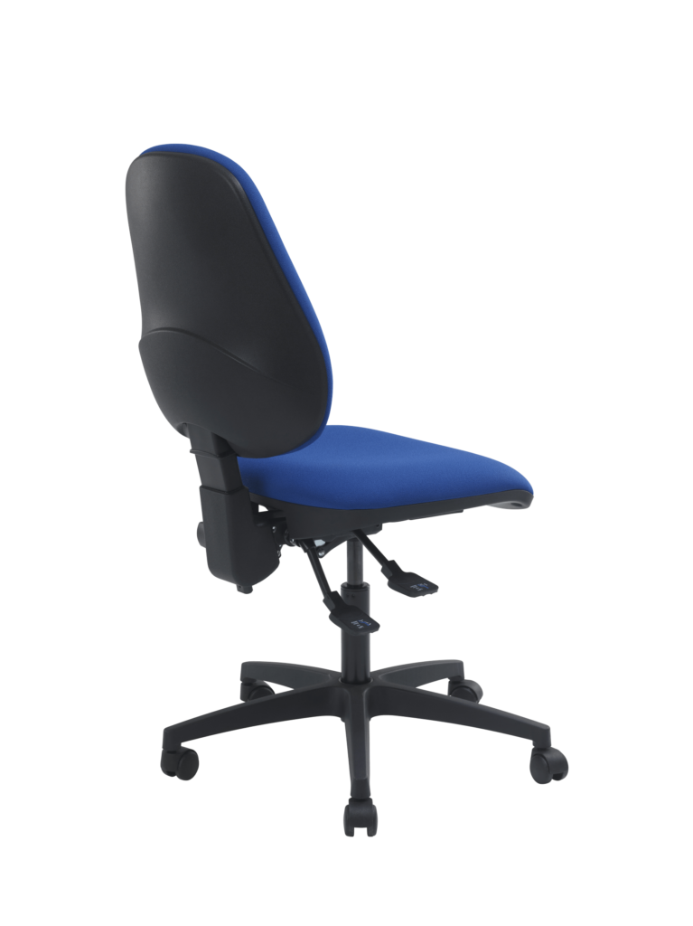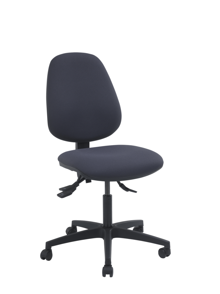 Réglage par manette pour blocage / déblocage du dossier et manette pour réglage de la hauteur d’assise par vérin à gaz autoporteur, classe 4, course nominale de 130mm, répondant aux normes DIN 4550/4551.
