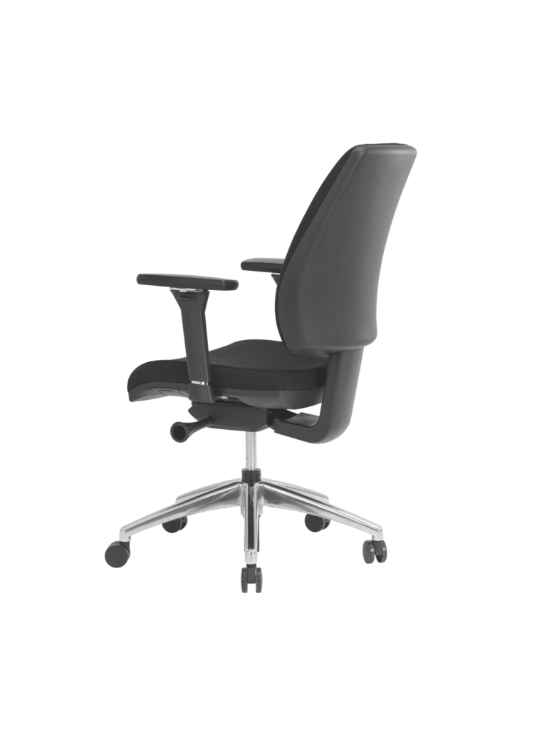 Réglage par manette pour blocage / déblocage du dossier et manette pour réglage de la hauteur d’assise par vérin à gaz autoporteur, classe 3, course nominale de 130mm, répondant aux normes DIN 4550/4551.